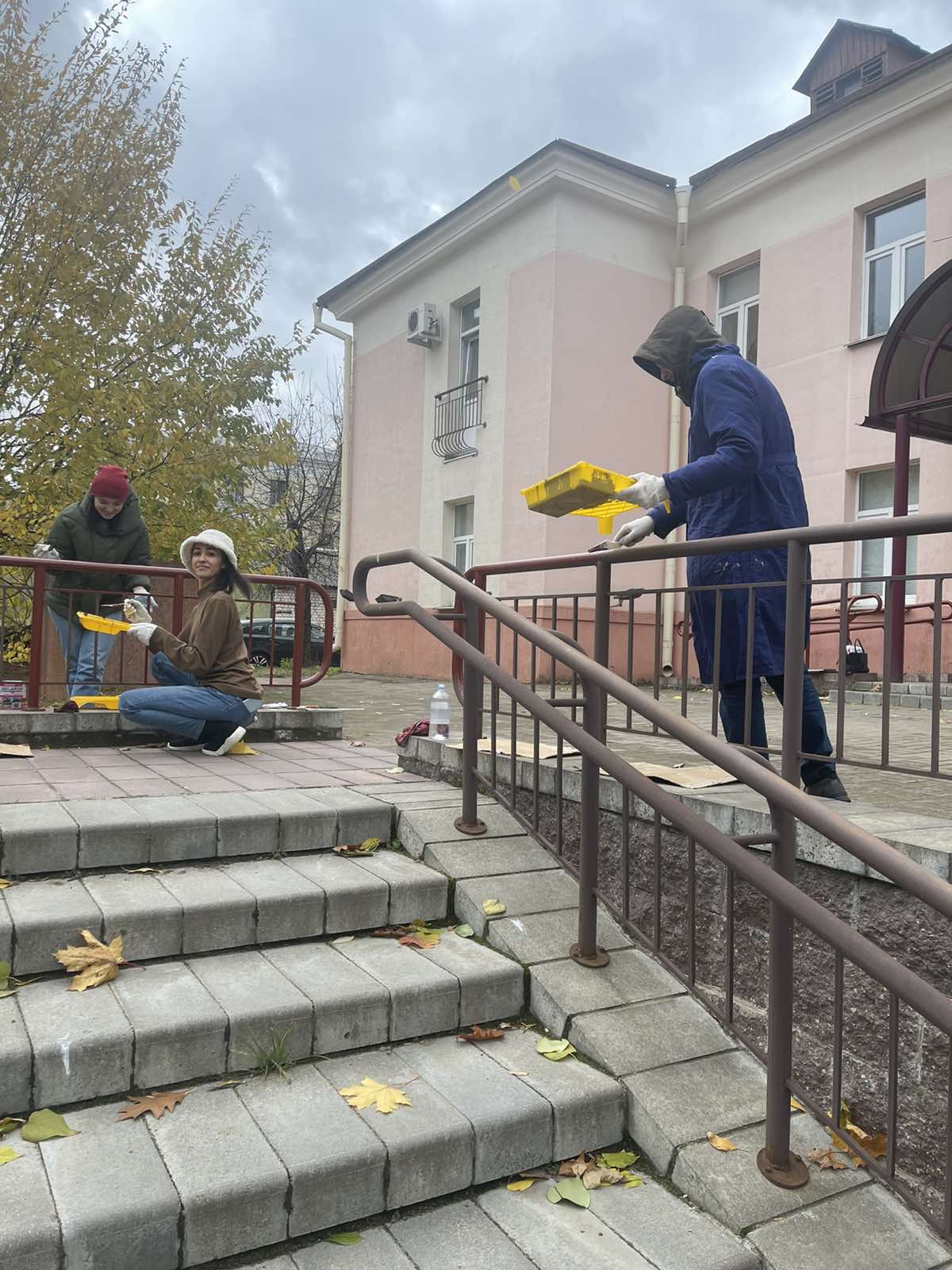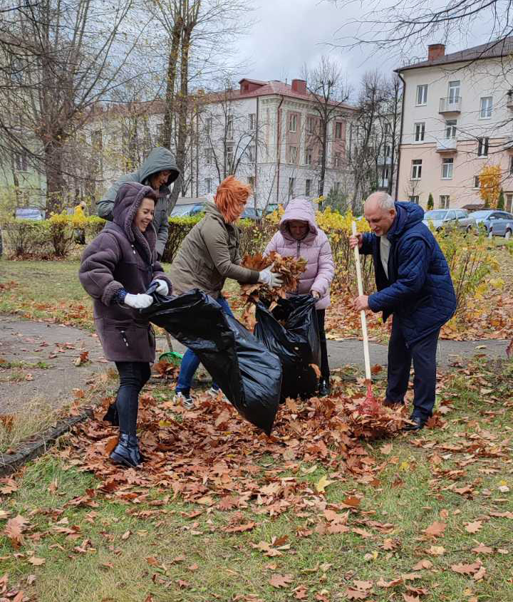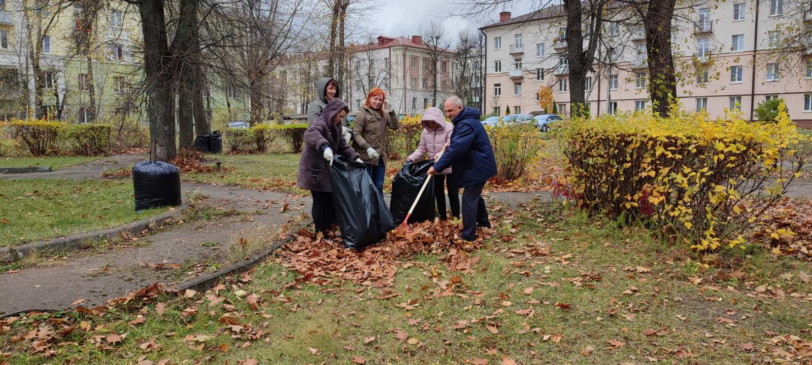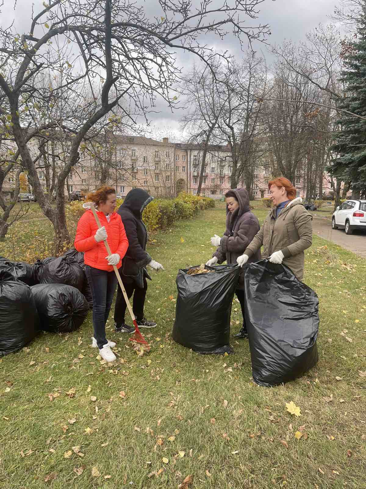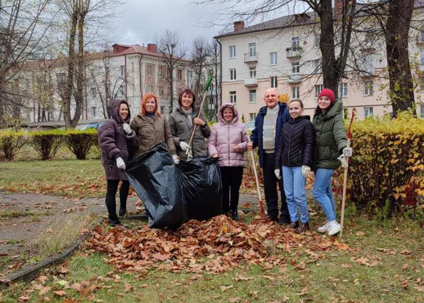 В конце октября сотрудники издательства «Адукацыя i выхаванне» во главе с директором Валентином Новогродским приняли участие в общегородском субботнике по наведению порядка и благоустройству территории.