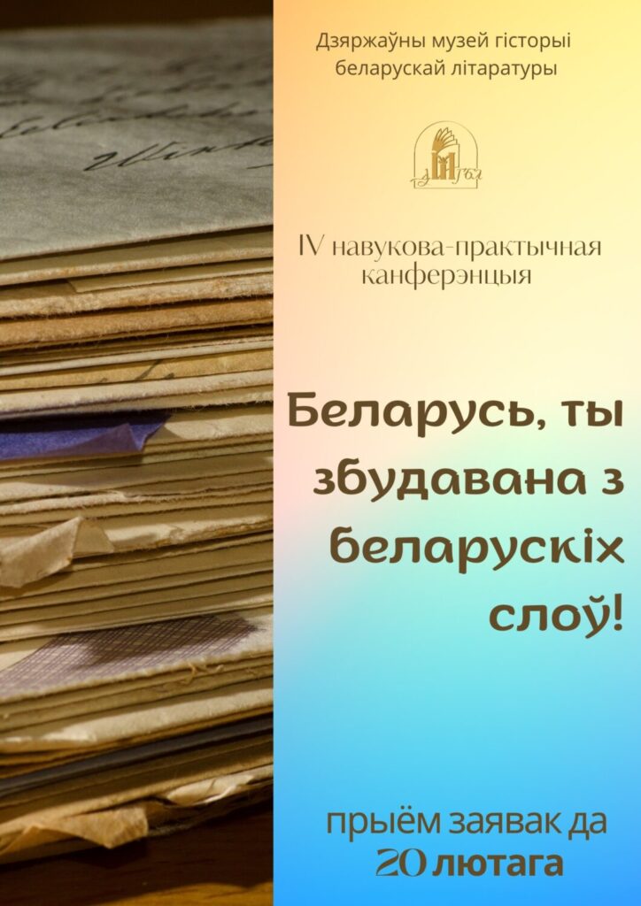 Дзяржаўны музей гісторыі беларускай літаратуры запрашае вучняў VІІI–XІ класаў г. Мінска і Мінскай вобласці прыняць удзел у ІV навукова-практычнай канферэнцыі “Беларусь, ты збудавана з беларускіх слоў!” да Міжнароднага дня роднай мовы.
