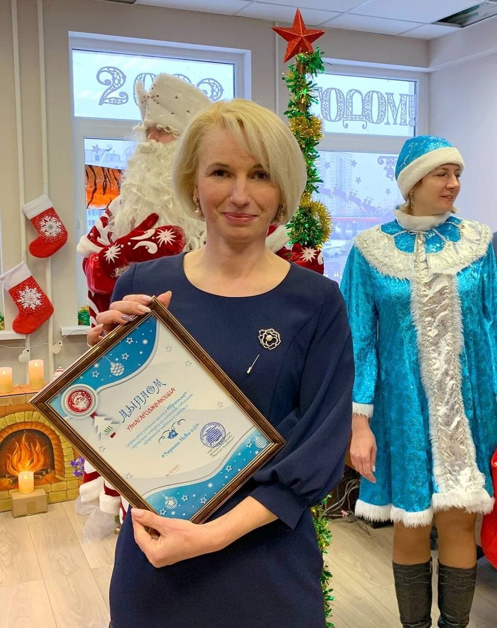 Поздравить победителей пришли сотрудники издательства во главе с директором Валентином Новогродским, а также Дед Мороз со Снегурочкой.