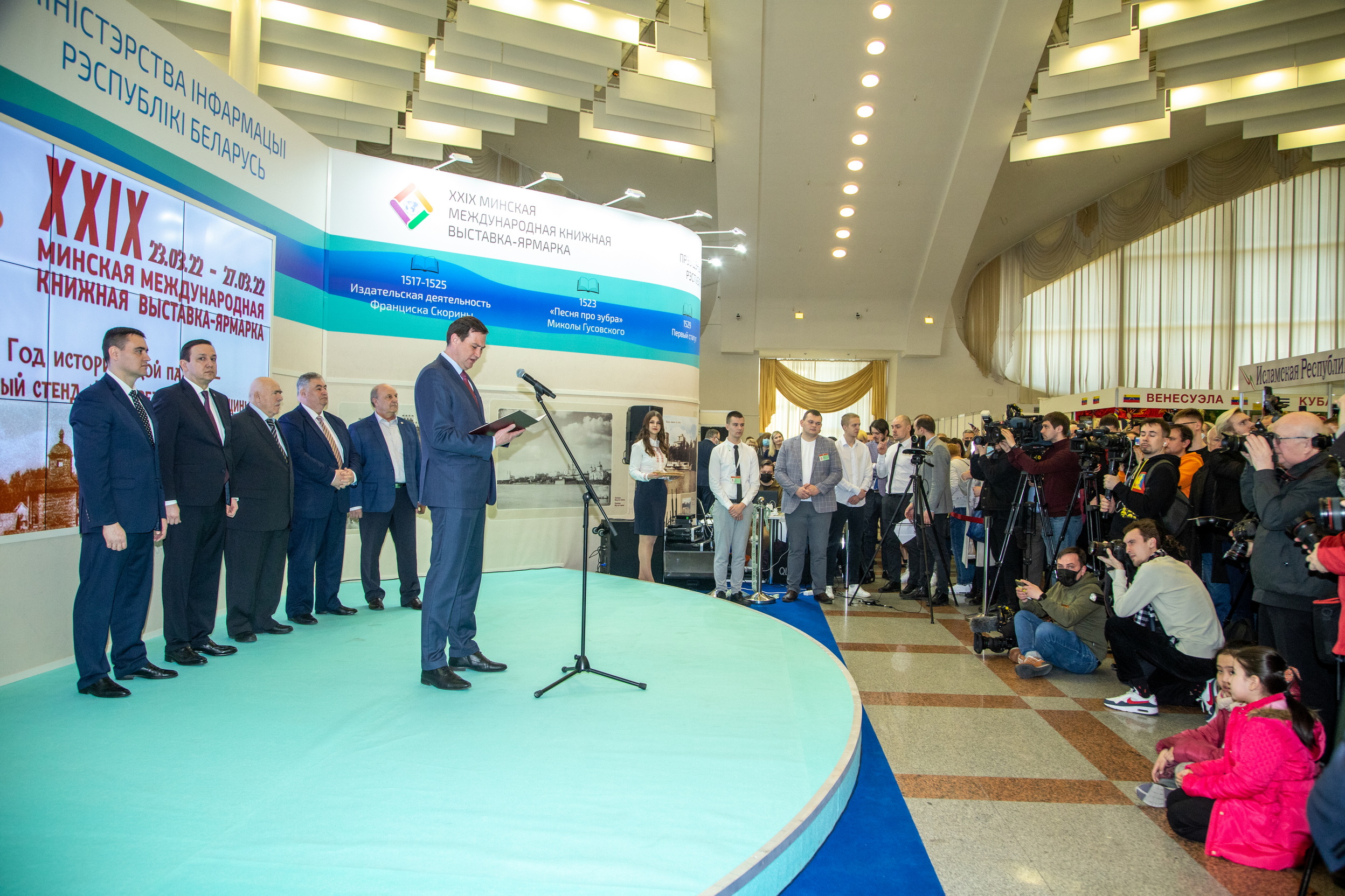 Сегодня, 23 марта, в столице состоялось торжественное открытие XXIX Минской международной книжной выставки-ярмарки в Административном комплексе по адресу Победителей, 14. Как отметил на церемонии Министр информации Республики Беларусь Владимир Перцов, «у нас сегодня представлено 12 иностранных государств и 222 участника из этих стран с совершенно разными книгами. Книга здесь может найти своего читателя, а читатель — книгу, которую в простом магазине он может и не увидеть… Наша страна является одной из мекк для тех, кто любит и читает книги».