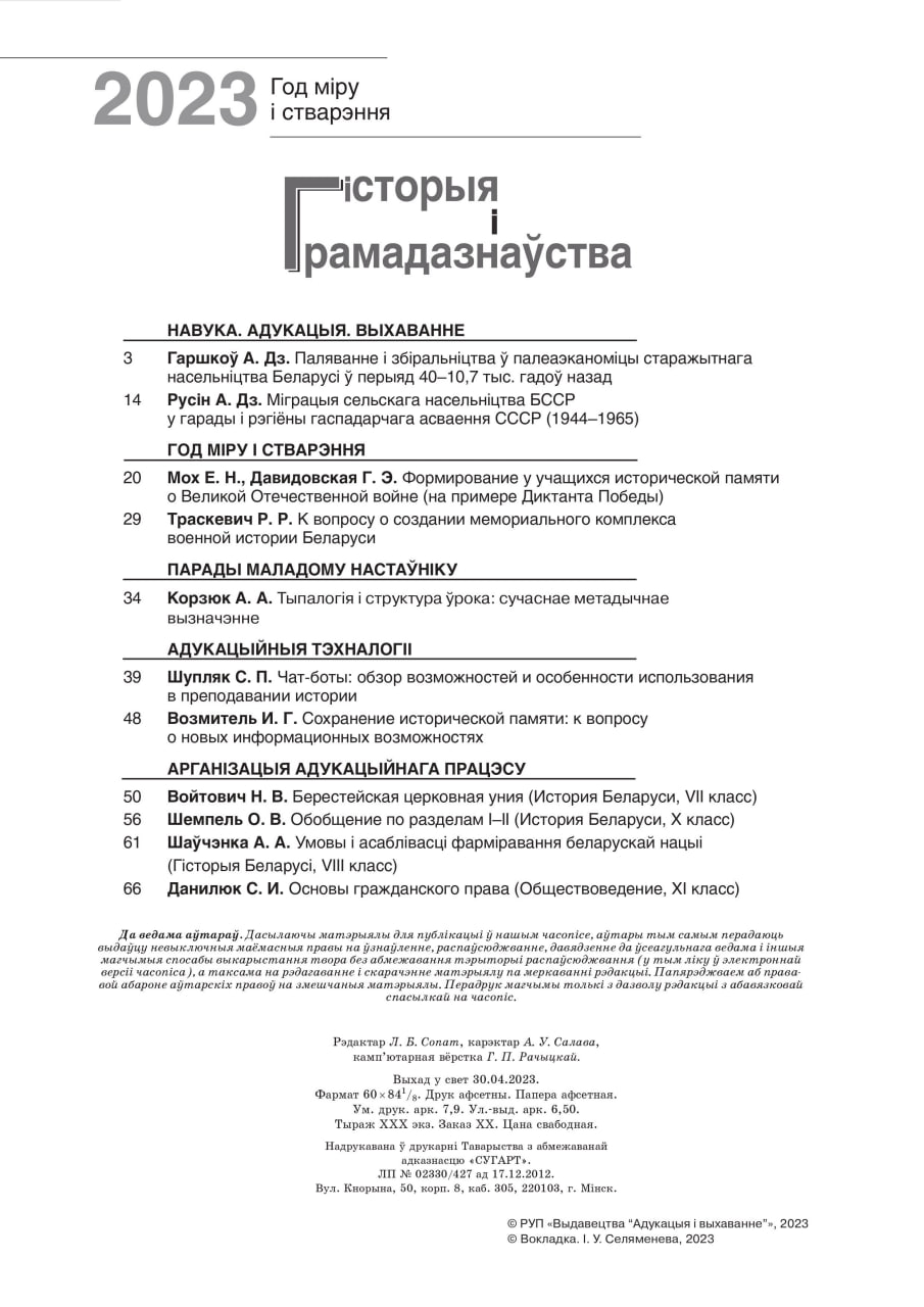 Прапануем анонс № 2 навукова-метадычнага часопіса "Гісторыя і грамадазнаўства"