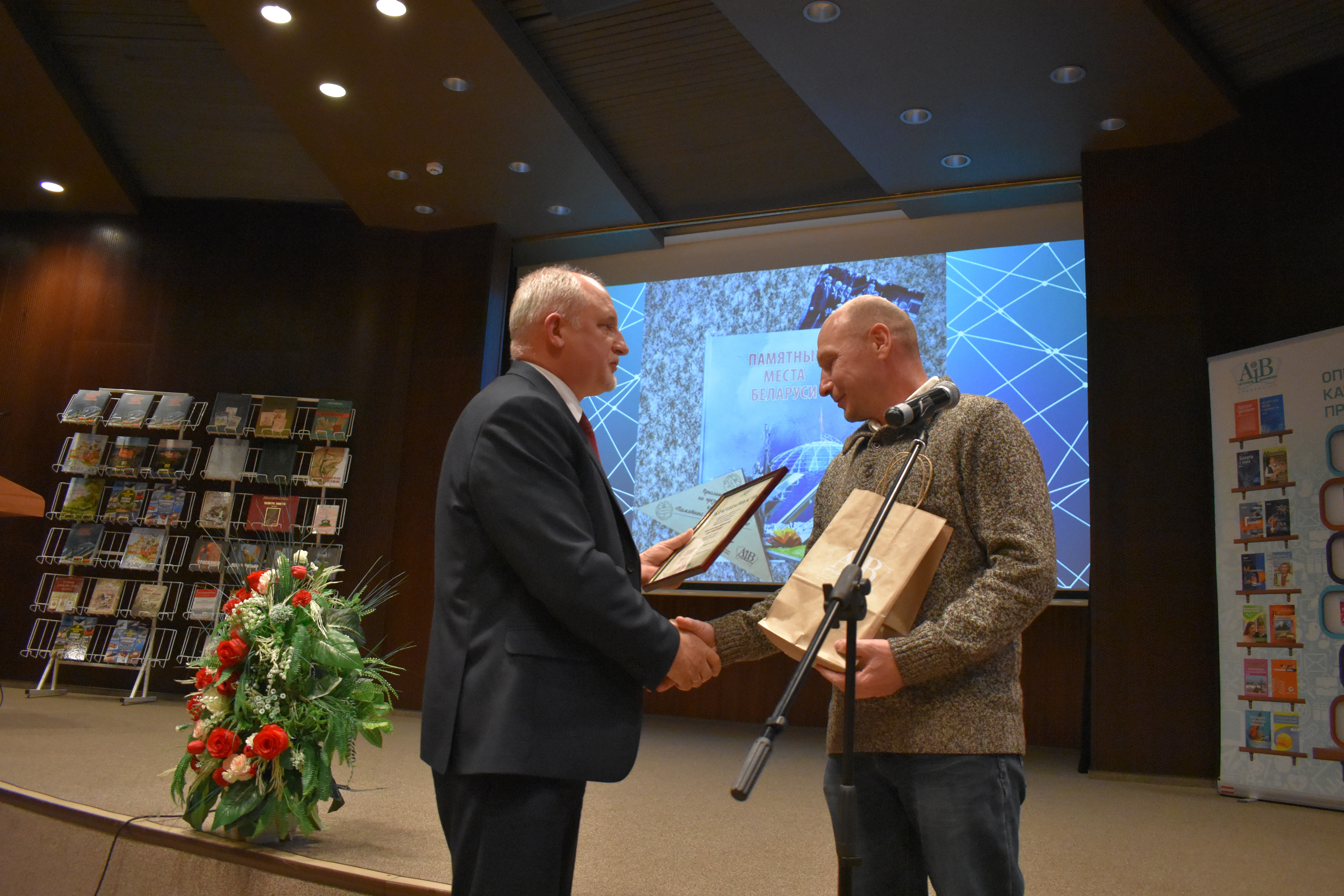 Валентин Янович поблагодарил за плодотворное сотрудничество директора музея и коллектив сотрудников музея истории Великой Отечественной войны, выразил уверенность в осуществлении новых совместных творческих проектов и вручил памятный приз.