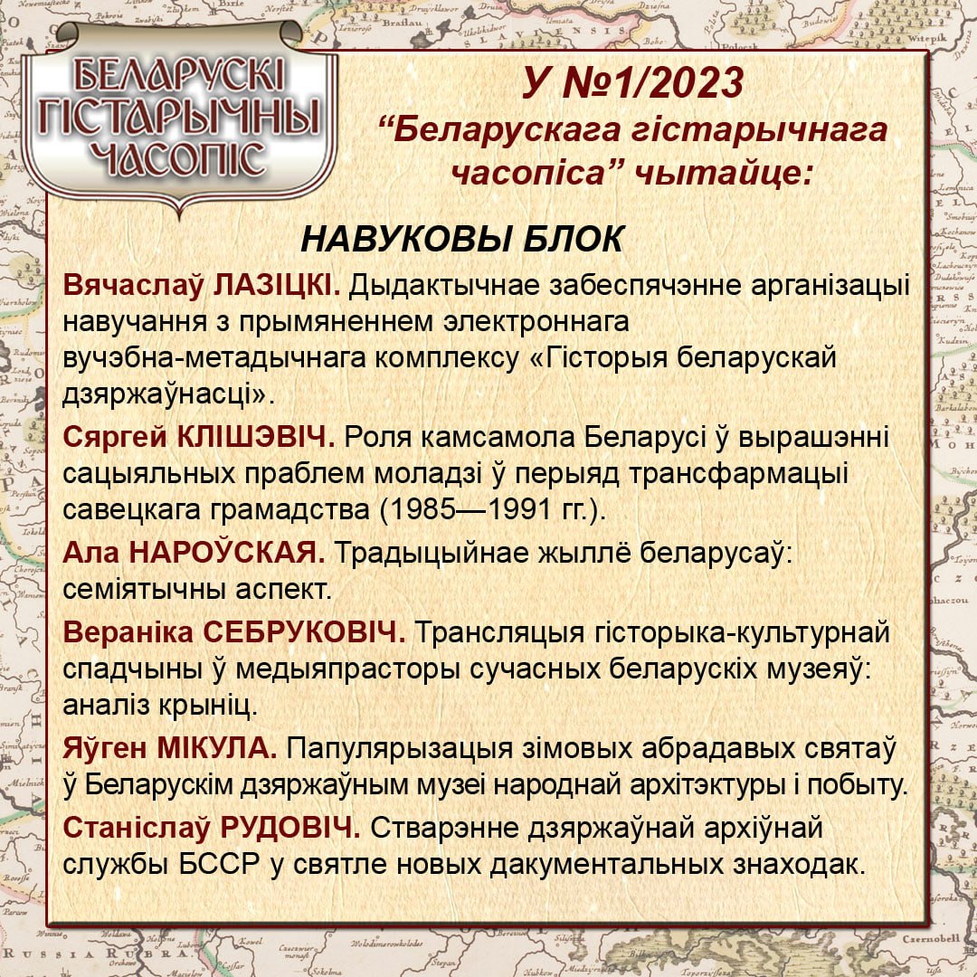 Рэдакцыя “Беларускага гістарычнага часопіса” апублікавала змест новага нумара 1/2023