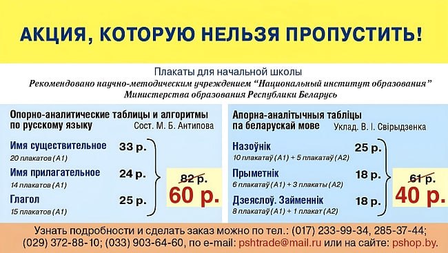 В нашем Интернет-магазине стартует распродажа! Со скидкой можно приобрести плакаты для начальной школы, рекомендованные научно-методическим объединением «Национальный институт образования».