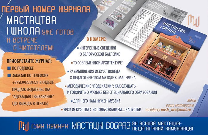 Новое название (ранее издавался как "Мастацкая i музычная адукацыя"), новые возможности, новый формат и даже обложка новая! Новая редакционная коллегия - и это специалисты, которые глубоко заинтересованы в том, чтобы сфера искусства расширялась.