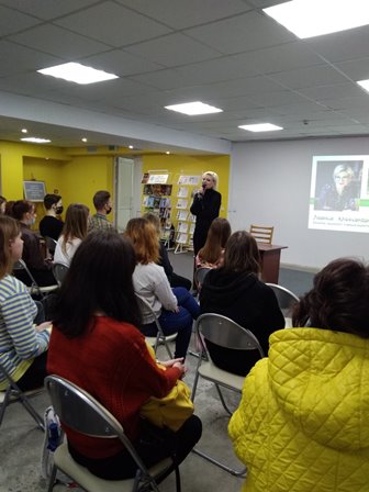Присутствовавшие, среди которых были учащиеся колледжей, учителя и сотрудники библиотек, познакомились с новой книгой Ларисы Кучеровой «Живая боль войны».