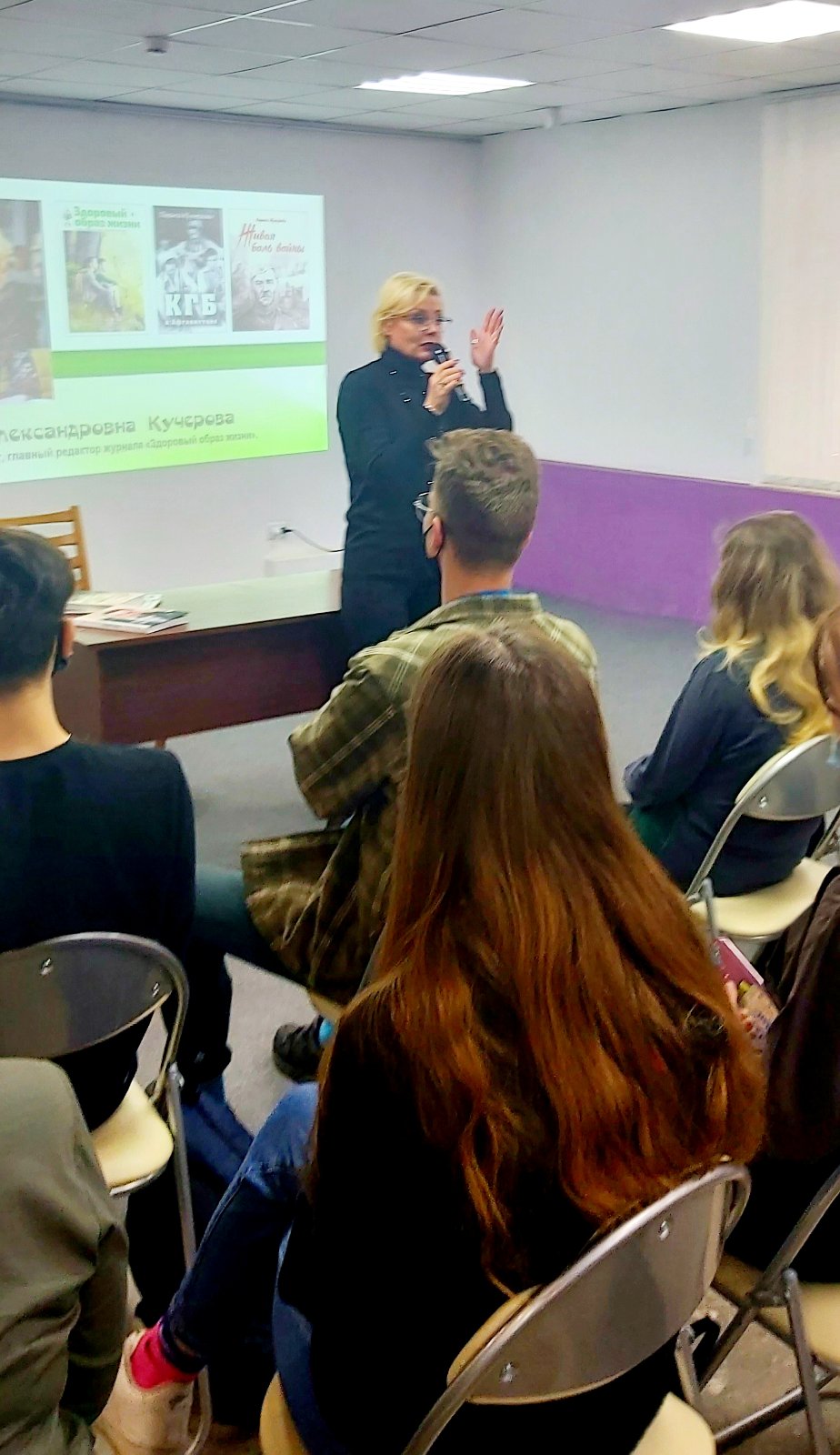 Автор поделилась живыми подробностями о работе над книгой, ответила на многочисленные вопросы участников, а также рассказала о журнале «Здоровый образ жизни», осуществляющем информационно-методическую поддержку в области здоровьесбережения, и провела автограф-сессию.