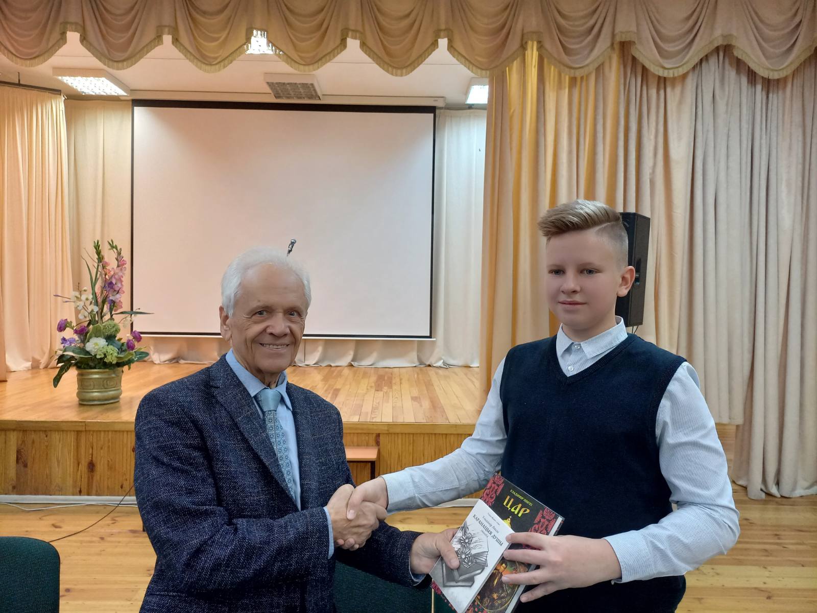Цікавай была перадгісторыя гэтай сустрэчы. Настаўнік рускай мовы і літаратуры Іна Леанідаўна Кірко пачула выступленне пісьменніка па радыё і так натхнілася яго разважаннямi пра выхаванне дзяцей, пра любоў да Радзiмы, пра жыццё, што сама прыйшла ў рэдакцыю часопіса «Вясёлка» i прапанавала правесці ў школе сустрэчу для старшакласнікаў.